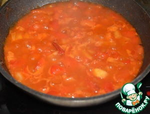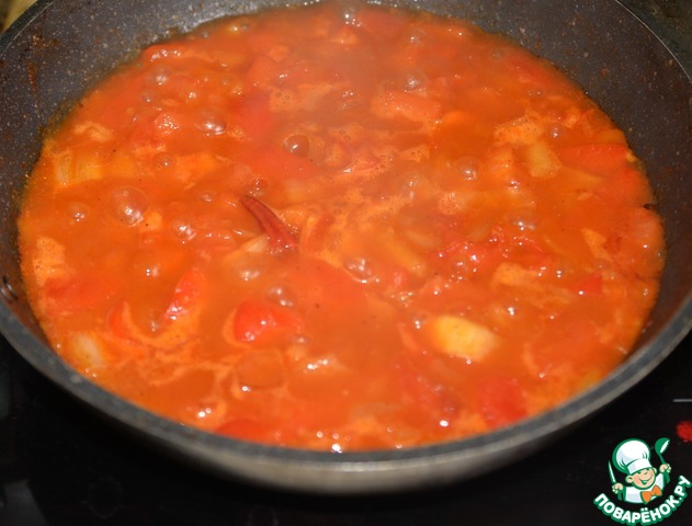 Варим соус до готовности на слабом огне, если помидоры не сочные, добавляем немного воды. Общее время приготовления соуса около 30 минут.