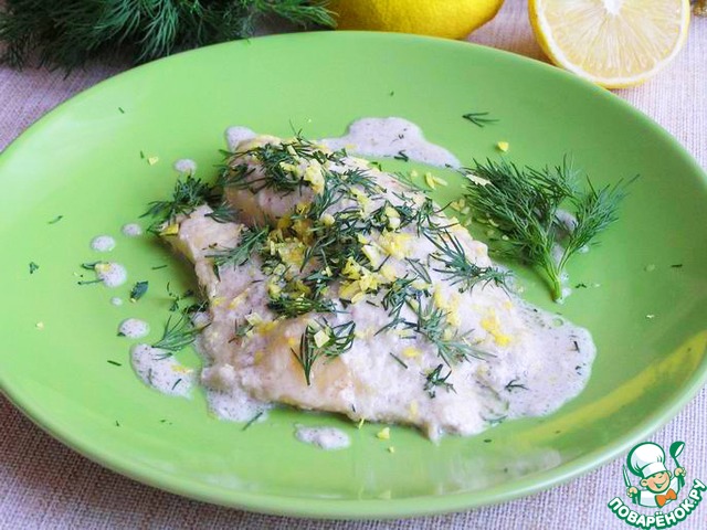 Готовую рыбку переложите на тарелку, полейте образовавшимся соусом, посыпьте рубленным укропом и цедрой лимона.