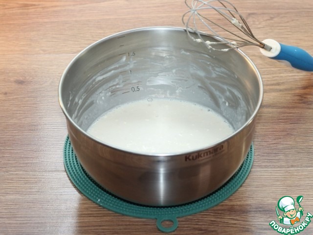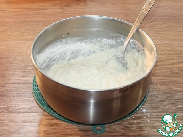 3. Оставшуюся муку смешиваем с разрыхлителем 2/3 ч. л..