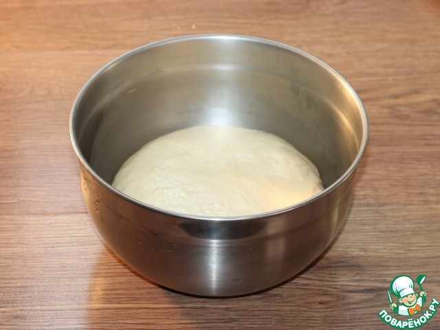 7. Добавляем мягкое сливочное масло (30 г) и вымешиваем гладкое и не липнущее к рукам тесто. Округляем тесто.