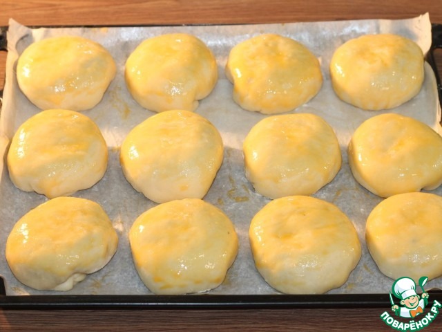 17. Пирожки смазываем желтком. Даем минут 5 просохнуть.