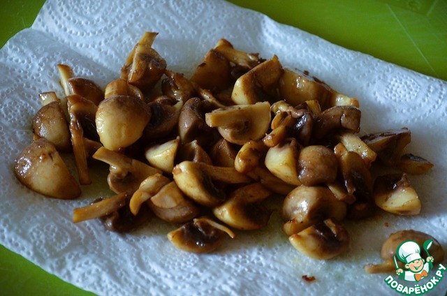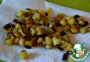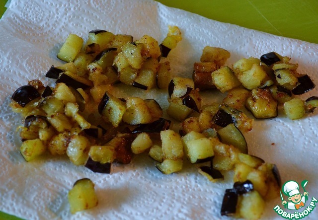 Затем в этом же масле обжарить баклажаны, промокнуть на бумажном полотенце.
