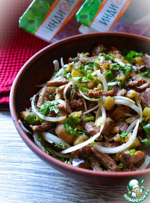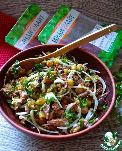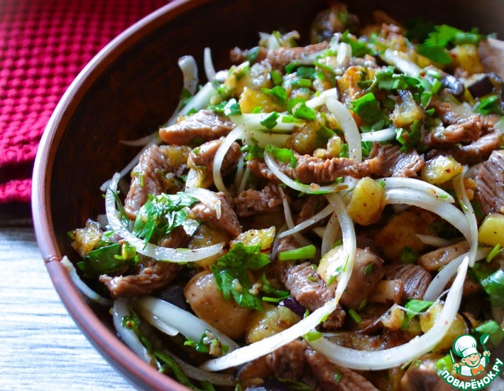 Рецепт «Салат "Жареный" с хрустящими баклажанами»: