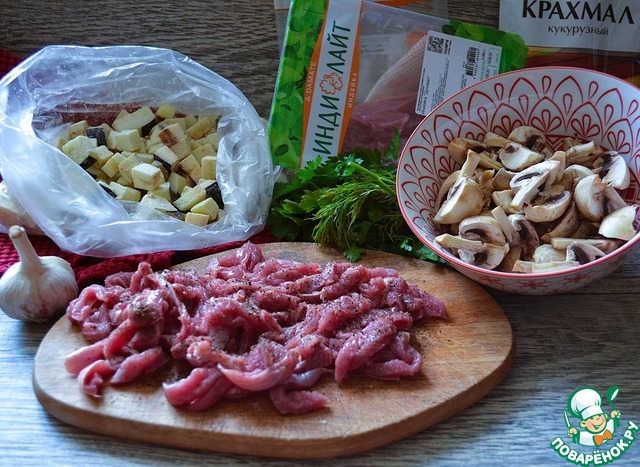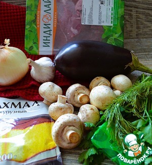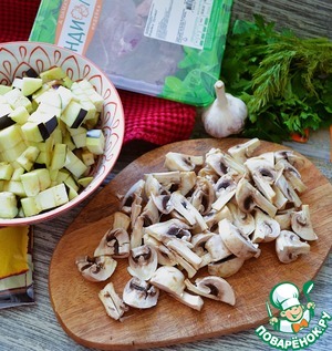 Баклажаны и грибы вымыть, обсушить, нарезать.