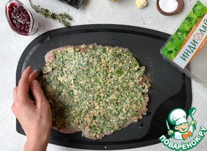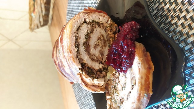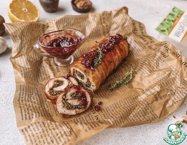 Рецепт «Руладин из индейки под брусничным соусом»: