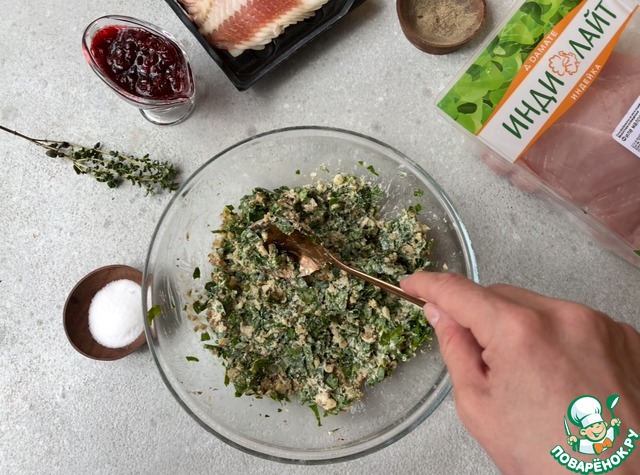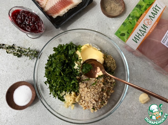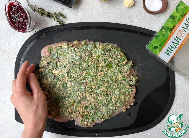 Ингредиенты для «Руладин из индейки под брусничным соусом»: