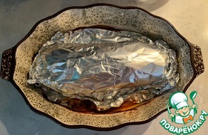 Снимите фольгу, подрумяньте под грилем 10–15 минут до хрустящей корочки.