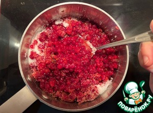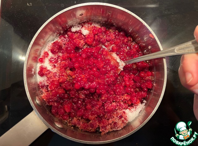 Для соуса: соедините в сотейнике бруснику, сахар, уксус и немного воды. Варите на слабом огне 5–7 минут до загустения. Можно протереть через сито для более гладкой текстуры.