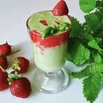 Разлить по стаканчикам, чередуя базиликовый йогурт, клубничный соус, заканчивая базиликовым йогуртом. Украсить клубникой и листьями базилика и сразу подавать.
