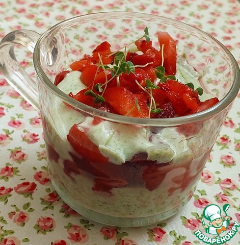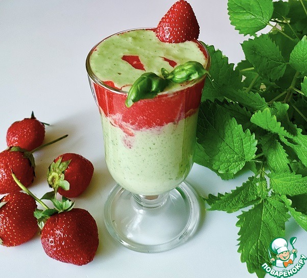Рецепт «Десерт из йогурта с базиликом и клубникой»: