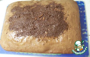 Варим глазурь: кусочек сливочного масла (примерно 20г) и 2 ст. л. сахарной пудры на маленьком огне растворяем, перемешивая, до однородности. Вливаем коньяк (1–1,5 ст. л.), перемешиваем, держим еще пару минут на огне, выливаем на кекс. Сверху посыпаем молотой шоколадкой.