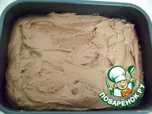 Яйца хорошо взбиваем с сахаром, добавляем сметану и нарезанное маленькими кусочками масло, перемешиваем до однородной консистенции. Затем всыпаем муку, какао, добавляем соль и соду, ванилин. Тесто получается очень плотное, маслянистое.