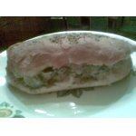 Я разрезала булочку не дорезая до конца примерно 1 см. Вовнутрь вложила целый ломтик ветчины из индейки КОМПАНА. Порезана ветчина тонко, так, как нужно нам. Выкладываем салата столько, сколько поместится вовнутрь ветчинного ломтика. Для такого бутерброда приготовьте бумагу. Так удобней будет есть бутерброд. Приятного аппетита! Это вкусно!