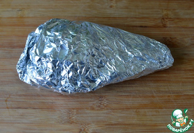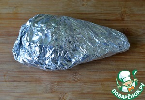 Плотно заворачиваем голень в фольгу так, чтобы при приготовлении не вытекал сок. Запекаем в духовке при 200 градусах 1 час или на углях мангала 45 минут.