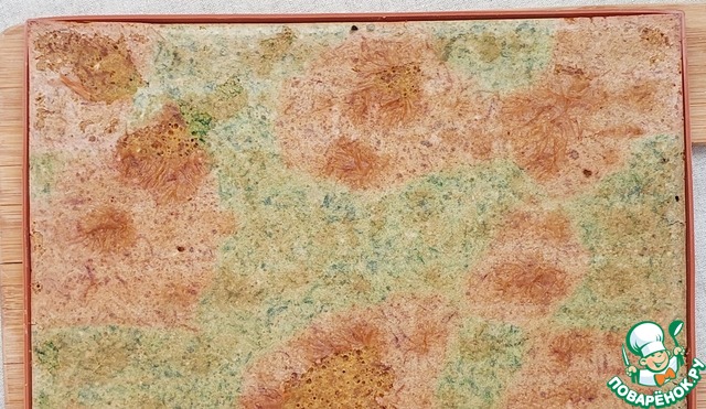 Свернуть рулет. Накрыть пленкой, пакетом или фольгой и убрать в холодильник.