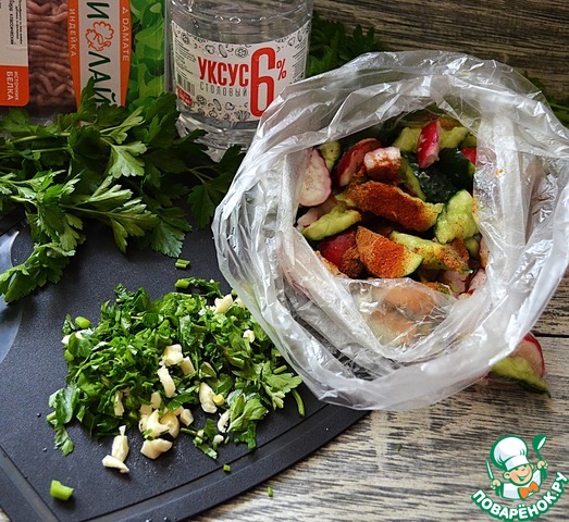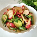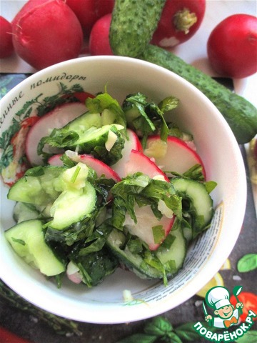 Нам понравилось редиска и огурцы, больше чем каждый в отдельности. И , если огурцы мы едим часто, то редис , один, вообще не понравился - трудноват на вкус. От души БЛАГО ДАРЮ за фото и добрый отзыв.