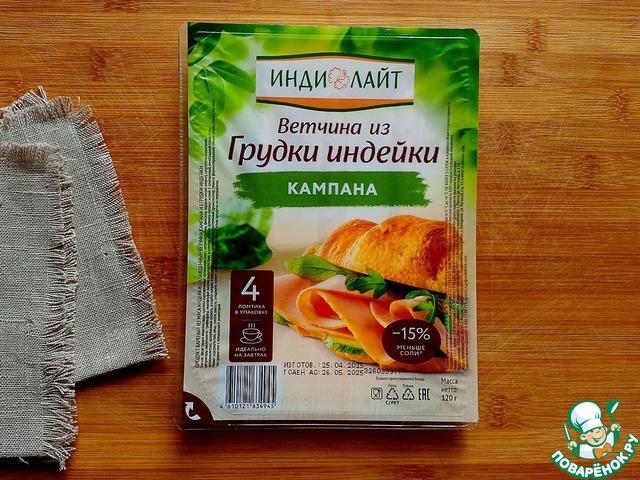 В рецепте я буду использовать ветчину ТМ ИНДИЛАЙТ КАМПАНА в нарезке.