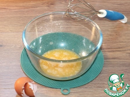 3. Вбиваем в миску 1 яйцо. Всыпаем 1 щепотку соли, ванильный сахар (2 ч. л.) и сахар (40 г), взбиваем венчиком до однородности массы.