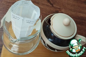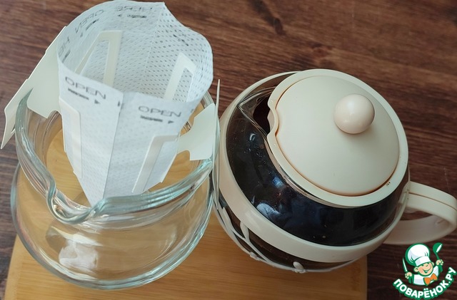 Настоявшийся кофе нужно процедить через фильтр для кофе или чая. Фильтр следует предварительно смочить кипятком (иначе придется долго ждать, пока холодный кофе размочит фильтр).