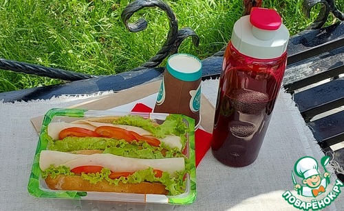 Холодный бутерброд в форме хот - дога так же удобен: ничего не вываливается, не течет, он сочный, его удобно упаковывать. Лично я терпеть не могу остывшие сосиски в хот-доге, поэтому на природу готовлю бутерброды именно так.