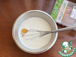Сливки смешайте с яйцами, добавив соль и перец по вкусу.