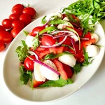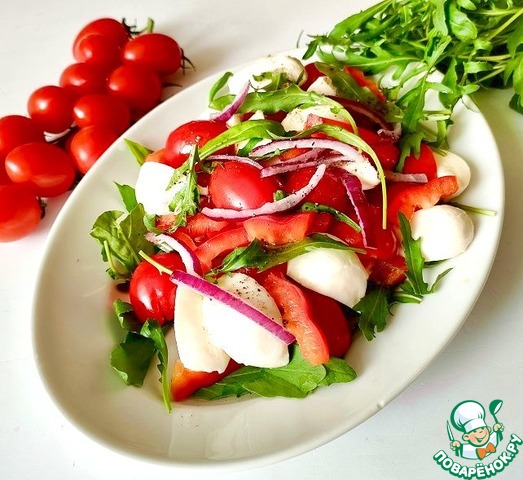 Рецепт «Салат с коктейльными томатами и сыром моцарелла»: