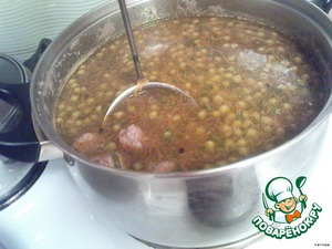 • Доводим до кипения и добавляем горошек