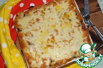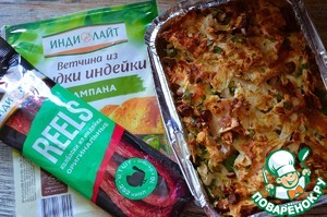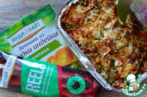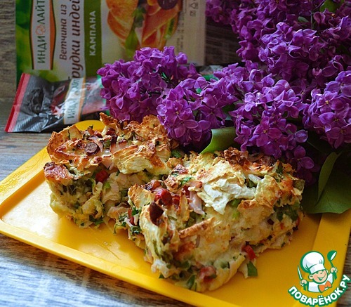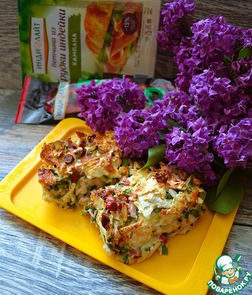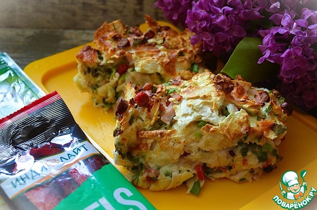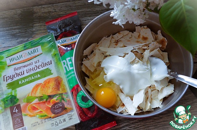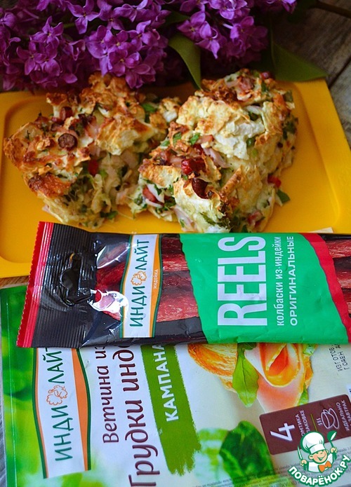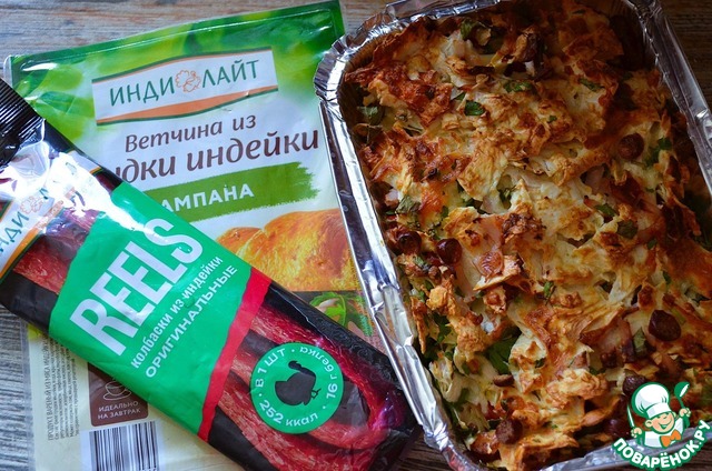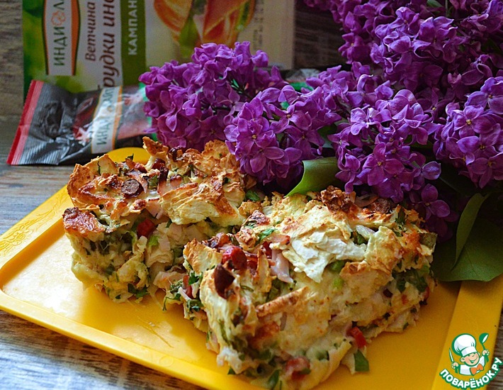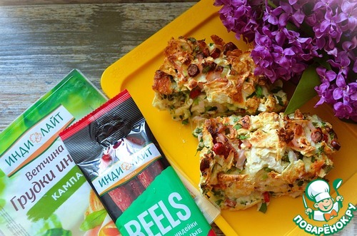 Рецепт «Пирог из лаваша с ветчиной и колбасками»: