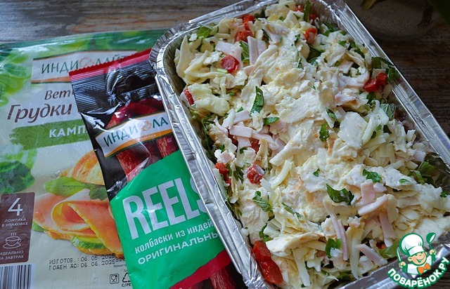 - Ветчина ("Кампана" из грудки индейки от ТМ ИНДИЛАЙТ) — 60 г