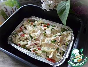 Перемешать и выложить в форму, 15-17 *20-22 см..
