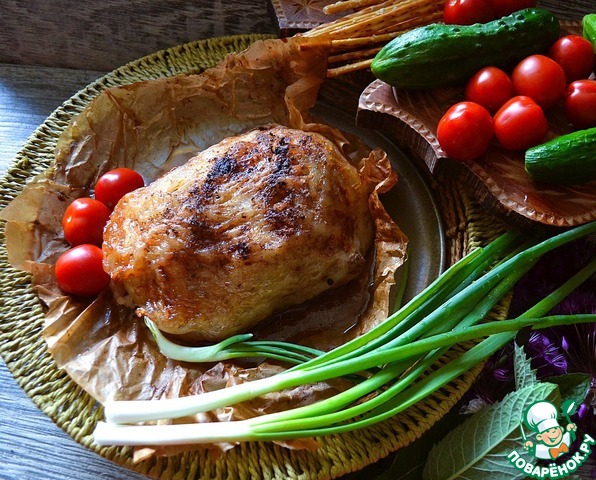 Слегка посолить и добавить специи. Плотно завернуть в пергамент.