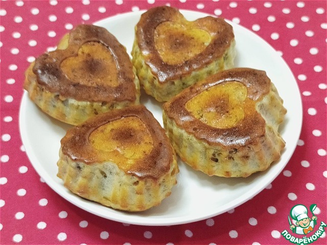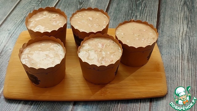 Разложить тесто по формочками. Если нужно - формочки предварительно смазать маслом. Объем моих формочек 80-90 мл. Можно готовить в любых формах для кексов.