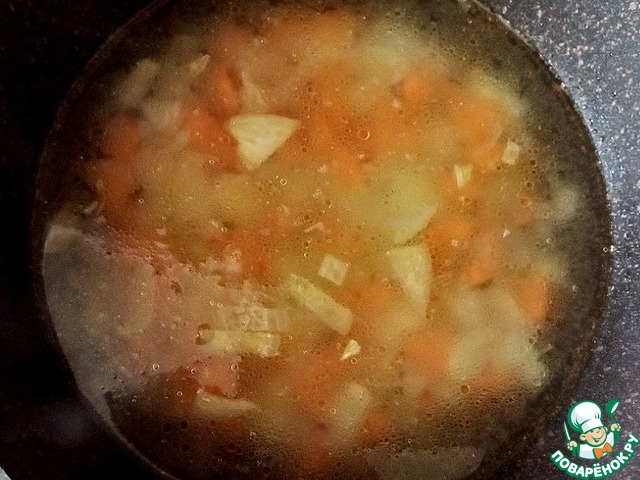 Удалите лавровый лист и накройте крышкой. Даём постоять супу минут 5 под крышкой и подаём к столу.