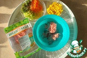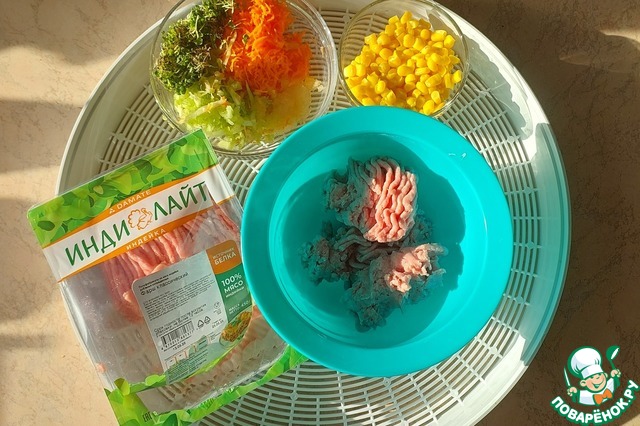 Ингредиенты. Проростки можно использовать любые, у меня проростки чиа. Вместо проростков можно использовать микрозелень или просто зелень, мелко порезанную. Кукуруза замороженная, но можно и консервированную. Фарш из индейки, у меня ТМ Индилайт "Классический". Вместо свежего репчатого лука можно использовать луковый порошок. Яйцо добавлять или нет - смотрите по консистенции фарша. Я не добавляла, котлеты из фарша Индилайт прекрасно держат форму.