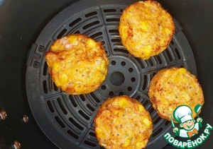 Запекать в аэрогриле 10 -15 минут при Т 180°. Я запекла четыре котлеты, по количеству едоков. Одну заморозила.