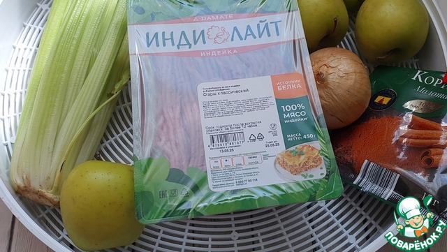 Ингредиенты. Фарш индюшачий ТМ Индилайт "Классический". Яблоки лучше небольшие, массой 110 -120г.