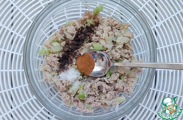 Добавить специи и соль. Специи можно любые, по вкусу. У меня корица и перец.