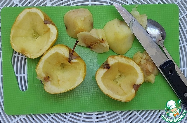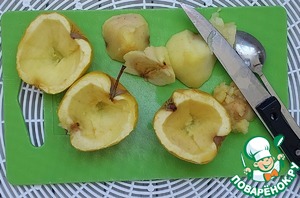 У слегка остывших яблок ножом или ложкой вынуть середину. Срезать мякоть вокруг семенной коробочки