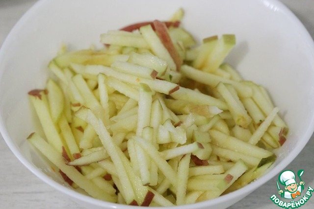 Яблоки нарезать тонкой соломкой.