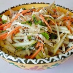 Сочный и вкусный овощной салат. Замечательно идёт в качестве закуски или гарнира к мясным блюдам, подойдёт для позднего ужина или постного стола.