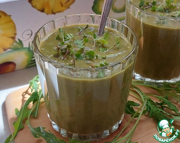 Освежающий вариант смузи с пикантной горчинкой руколы. Может быть и десертным вариантом напитка, и закусочным.