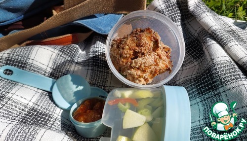 Наггетсы - популярная еда на выездных мероприятиях на свежем воздухе. И даже если у вас скатерть ломится от угощений - наггетсы собственного приготовления лишними не будут. Тем более готовятся элементарно. К наггетсам предлагаю приготовить фруктово -овощной салат.
