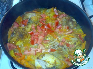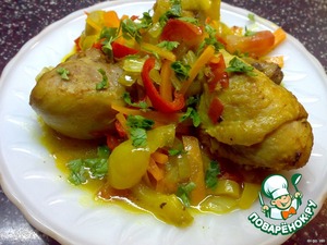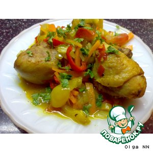 Нежная ароматная курочка с любимыми овощами. Очень быстро готовится.
