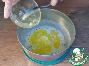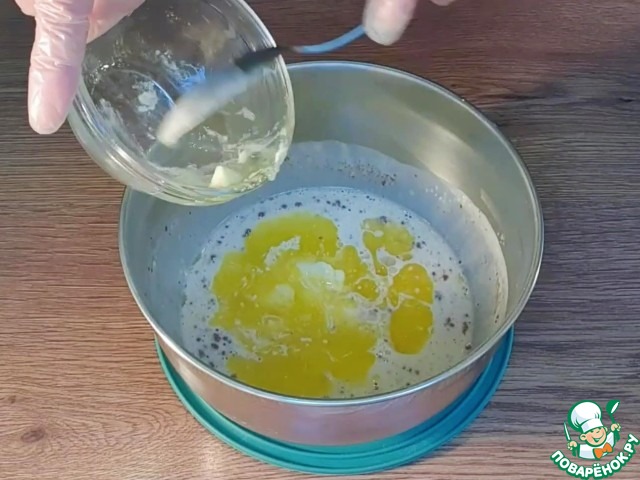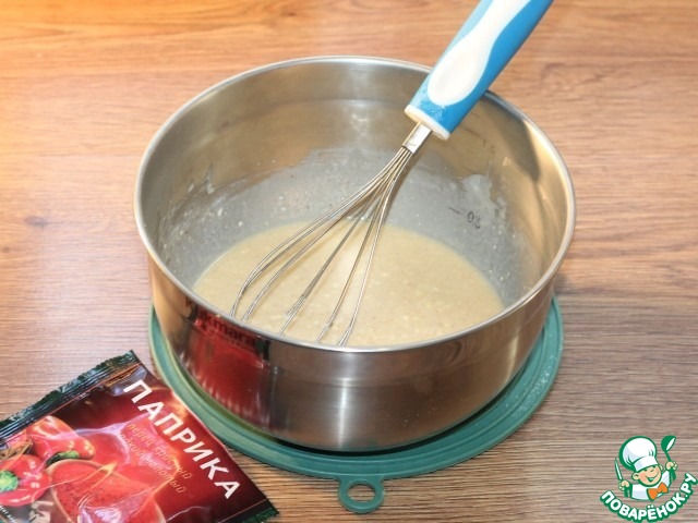 3. Перемешиваем пенистую опару и вливаем оставшееся молоко (50 мл.), растопленное и охлажденное сливочное масло (50 г). Всыпаем соль (1 ч. л. без/г или по вкусу) и паприку (0,5 ч. л.), перемешиваем.