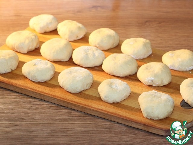 11. Готовое тесто обминаем и делим на 16 частей, скатываем их и округляем.