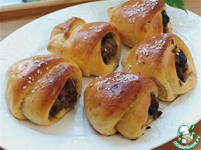 Рожки-пирожки на картофельном тесте с начинкой, очень мягкие и ароматные. Тонкая румяная корочка и немного слоистая выпечка. Очень аппетитная и сытная начинка из фарша индейки с луком и грибами. Попробуйте приготовить, это очень вкусно!