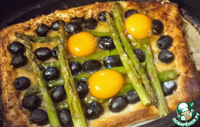 Рецепт «Пирог со спаржей, оливками и яйцами»: