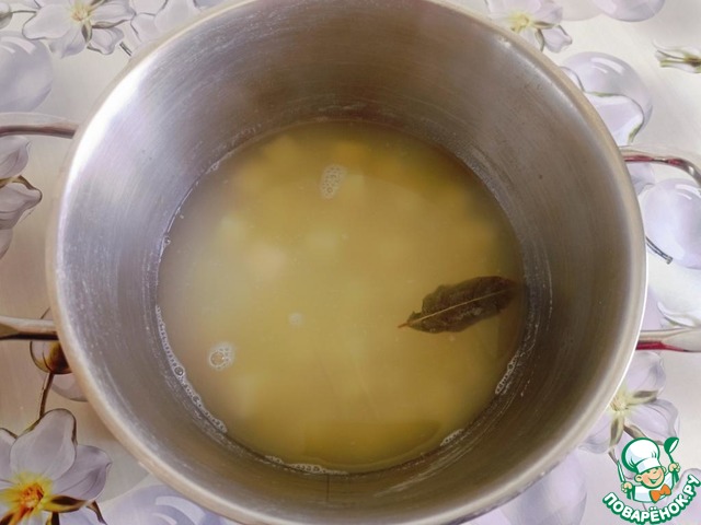 В кастрюлю налить воду, довести до кипения и положить нарезанный кубиками картофель и промытое пшено. Пшено варится 20 минут. Поэтому я его буду варить вместе с картошкой.