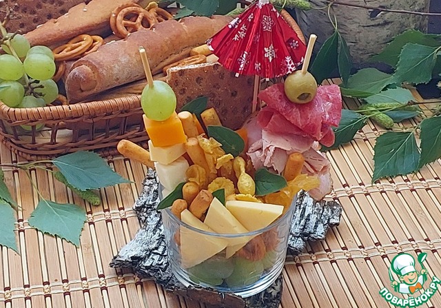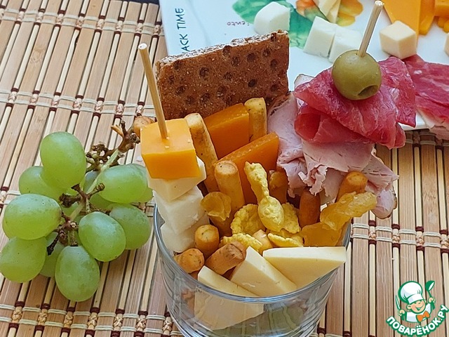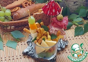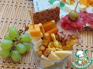 Рецепт «Фуршетный стаканчик "Фруктово-сырно-мясной"»: