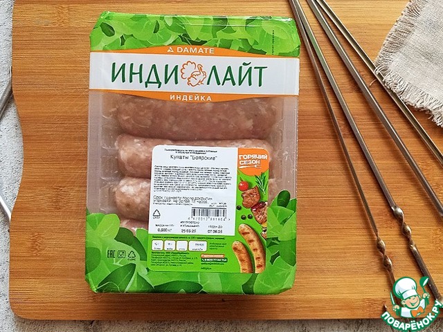 В рецепте я буду использовать купаты "Боярские" ТМ ИНДИЛАЙТ. В упаковке 5 шт, вес - 500 г.